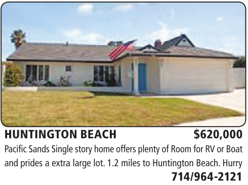 HUNTINGTON BEACH $620,000 Pacific Sands Single story home offers plenty of Room for RV or Boat and prides a extra large lot. 1.2 miles to Huntington Beach. Hurry 714/964-2121