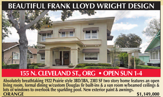Absolutely breathtaking 1922 Prairie style 3BD/3BA, 2303 SF two story home features an open living room, formal dining w/custom Douglas fir built-ins & a sun room w/beamed ceilings & lots of windows to overlook the sparkling pool. New exterior paint & awnings. ORANGE $1,149,000