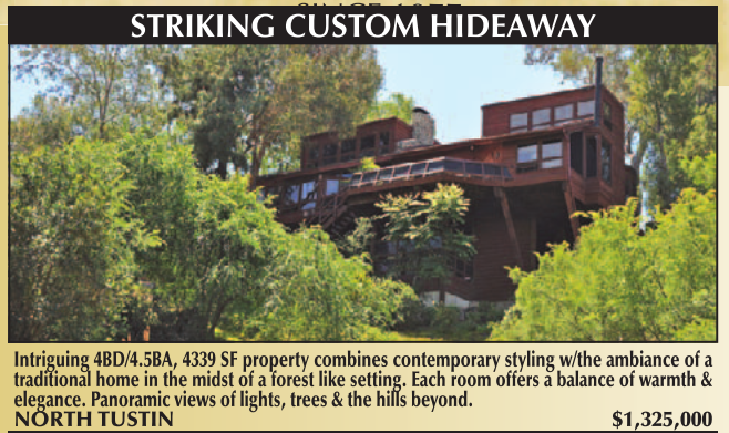 Intriguing 4BD/4.5BA, 4339 SF property combines contemporary styling w/the ambiance of a traditional home in the midst of a forest like setting. Each room offers a balance of warmth & elegance. Panoramic views of lights, trees & the hills beyond. NORTH TUSTIN $1,325,000