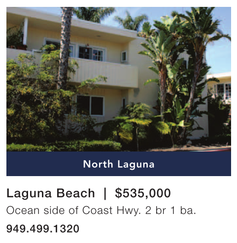 Laguna Beach | $535,000 Ocean side of Coast Hwy. 2 br 1 ba. 949.499.1320