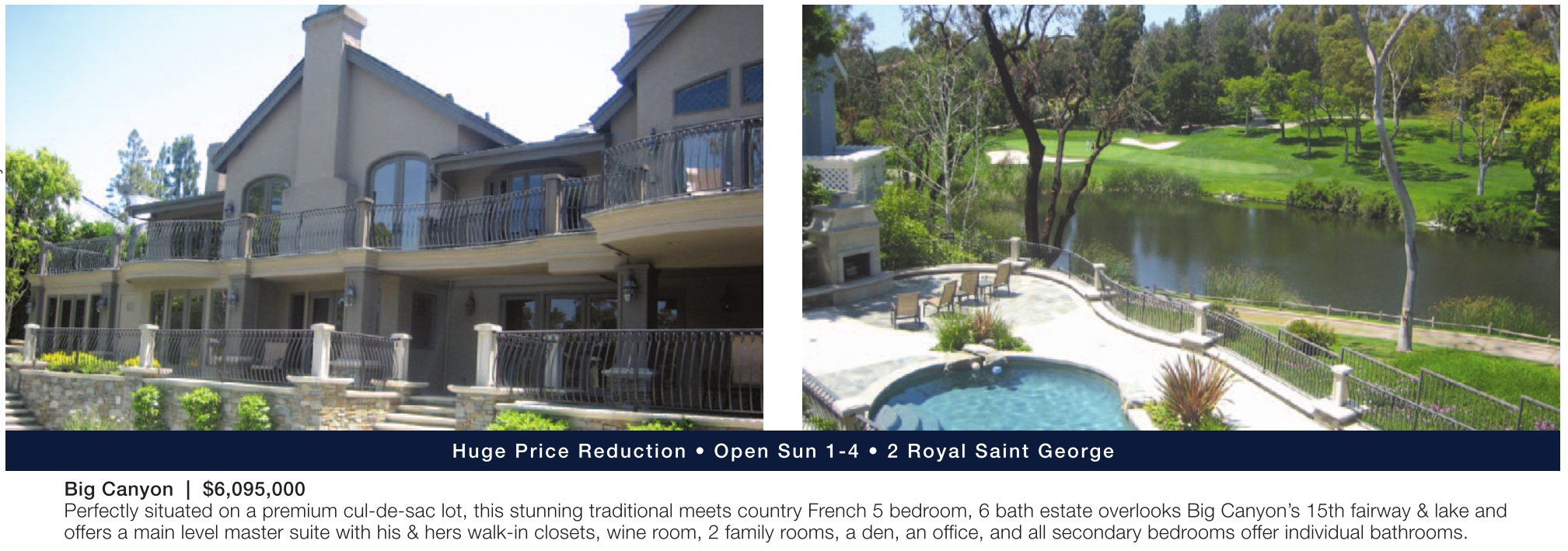 Big Canyon | $6,095,000 Perfectly situated on a premium cul-de-sac lot, this stunning traditional meets country French 5 bedroom, 6 bath estate overlooks Big Canyon’s 15th fairway & lake and offers a main level master suite with his & hers walk-in closets, wine room, 2 family rooms, a den, an office, and all secondary bedrooms offer individual bathrooms.