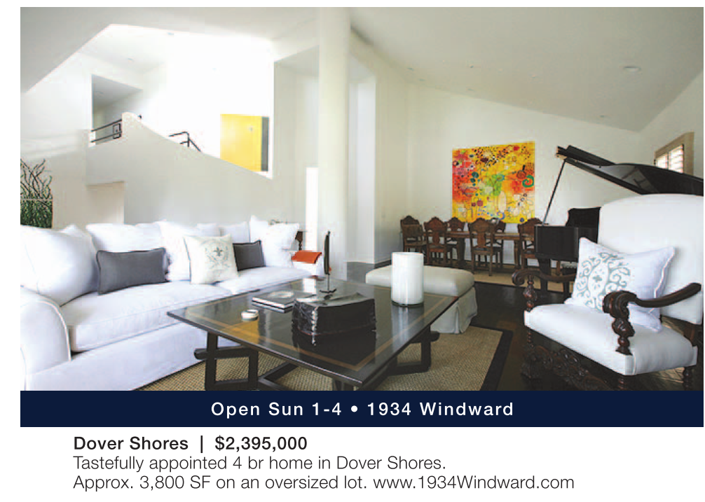 Dover Shores | $2,395,000 Tastefully appointed 4 br home in Dover Shores. Approx. 3,800 SF on an oversized lot. www.1934Windward.com