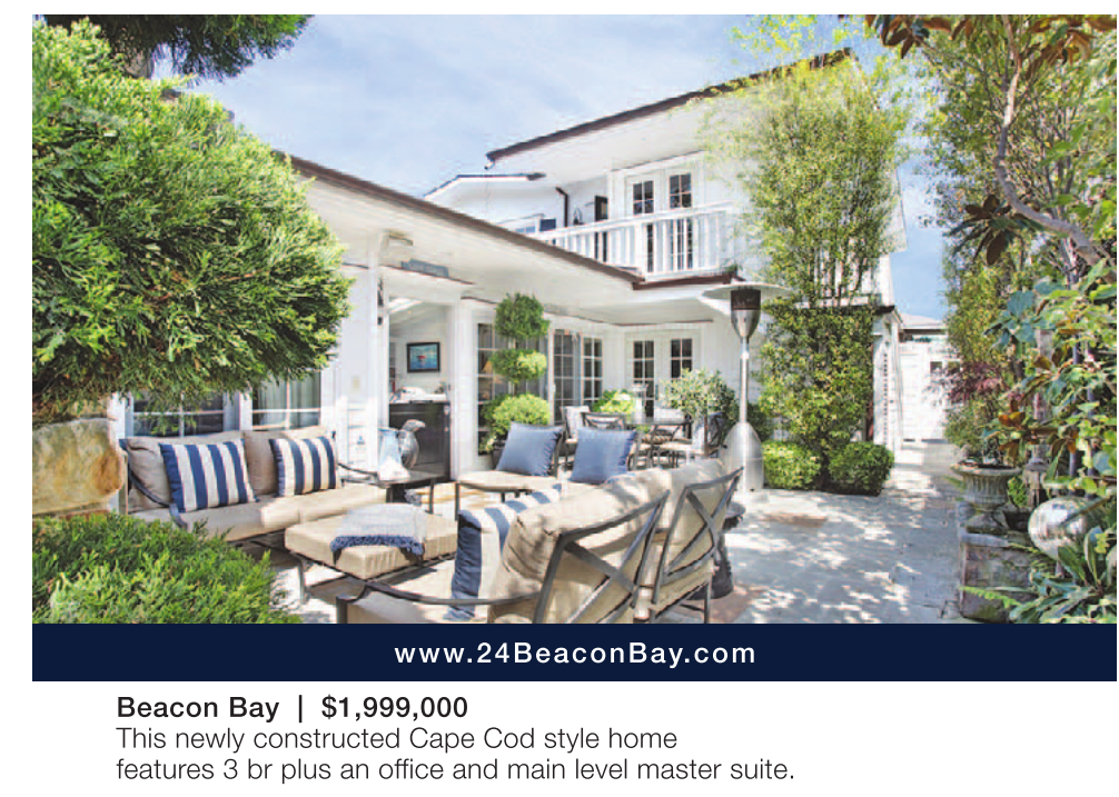 Beacon Bay | $1,999,000 This newly constructed Cape Cod style home features 3 br plus an office and main level master suite.
