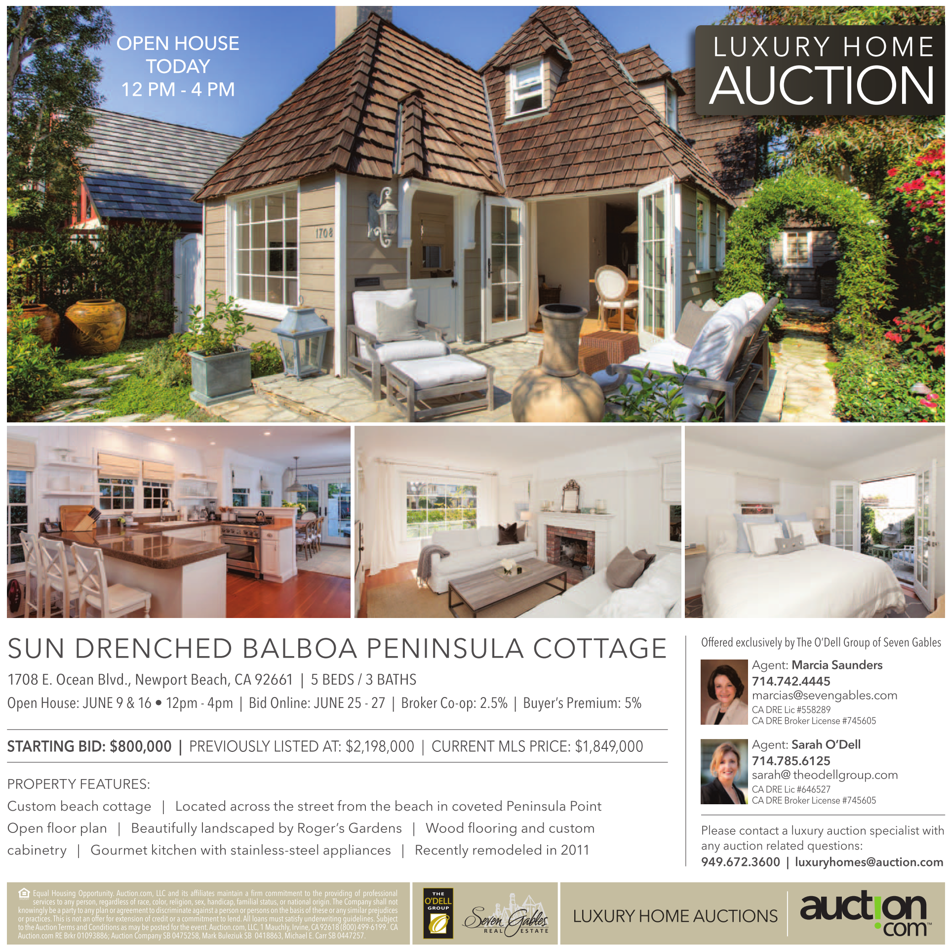 1708 E. Ocean Blvd., Newport Beach, CA 92661 | 5 BEDS / 3 BATHS Open House: JUNE 9 & 16 • 12pm - 4pm | Bid Online: JUNE 25 - 27 | Broker Co-op: 2.5% | Buyer’s Premium: 5%