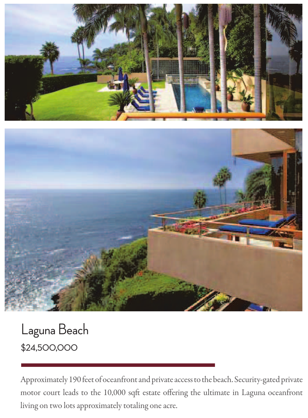 Approximately 190 feet of oceanfront and private access to the beach. Security-gated private motor court leads to the 10,000 sqft estate offering the ultimate in Laguna oceanfront living on two lots approximately totaling one acre.