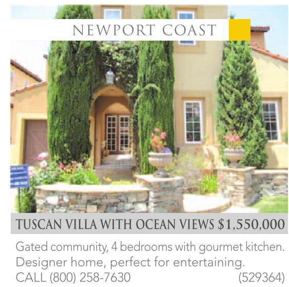 TUSCAN VILLA WITH OCEAN VIEWS $1,550,000 Gated community, 4 bedrooms with gourmet kitchen. Designer home, perfect for entertaining. CALL (800) 258-7630 (529364)