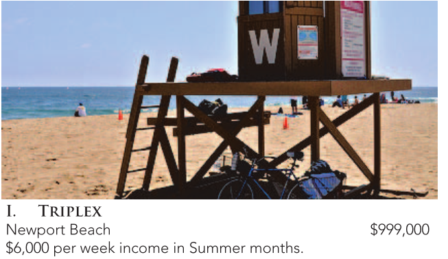Newport Beach $999,000 $6,000 per week income in Summer months.