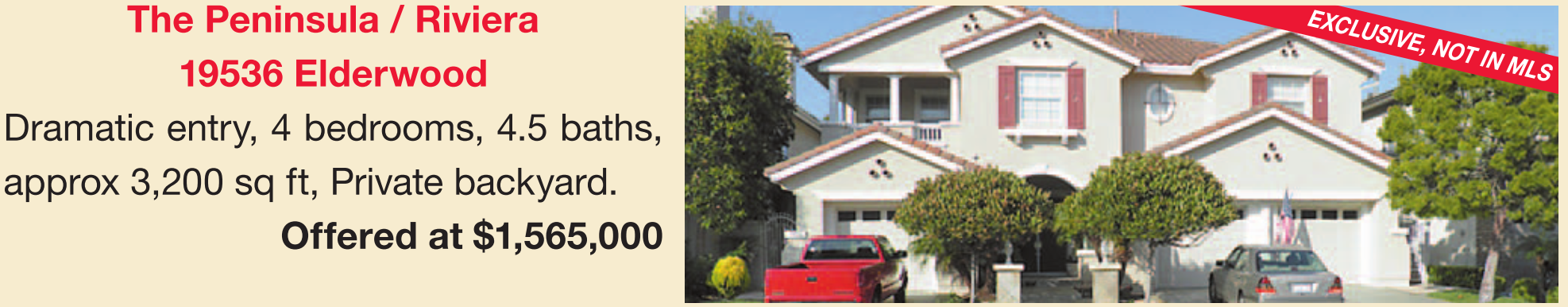 The Peninsula / Riviera 19536 Elderwood Dramatic entry, 4 bedrooms, 4.5 baths, approx 3,200 sq ft, Private backyard.