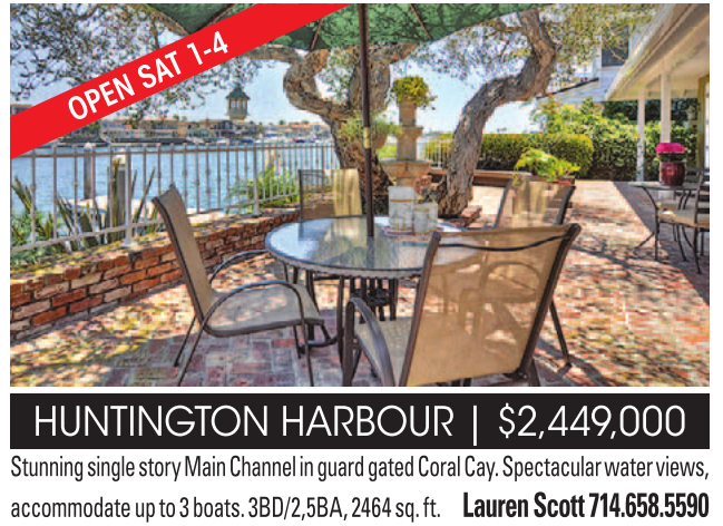 Stunning single story Main Channel in guard gated Coral Cay. Spectacular water views, accommodate up to 3 boats. 3BD/2,5BA, 2464 sq. ft. Lauren Scott 714.658.5590