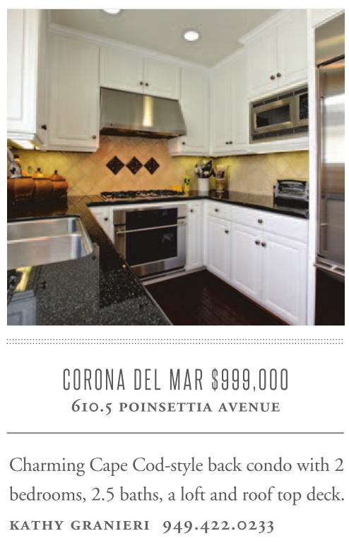 Charming Cape Cod-style back condo with 2 bedrooms, 2.5 baths, a loft and roof top deck. kathy granieri 949.422.0233