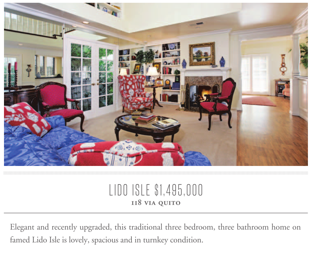 Elegant and recently upgraded, this traditional three bedroom, three bathroom home on famed Lido Isle is lovely, spacious and in turnkey condition.
