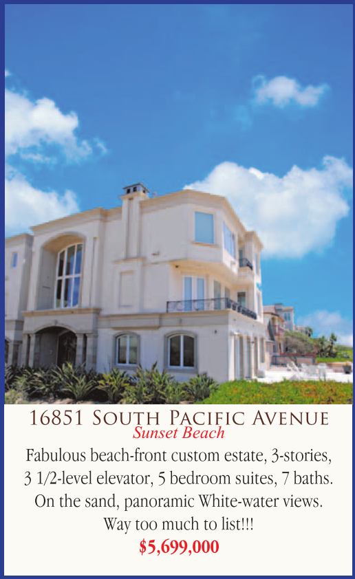Fabulous beach-front custom estate, 3-stories, 3 1/2-level elevator, 5 bedroom suites, 7 baths.