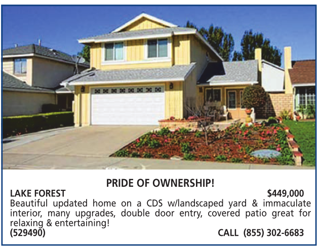 LAKE FOREST $449,000 Beautiful updated home on a CDS w/landscaped yard & immaculate interior, many upgrades, double door entry, covered patio great for relaxing & entertaining! (529490) CALL (855) 302-6683