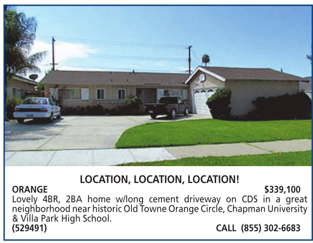 ORANGE $339,100 Lovely 4BR, 2BA home w/long cement driveway on CDS in a great neighborhood near historic Old Towne Orange Circle, Chapman University & Villa Park High School. (529491) CALL (855) 302-6683