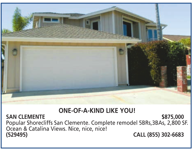 SAN CLEMENTE $875,000 Popular Shorecliffs San Clemente. Complete remodel 5BRs,3BAs, 2,800 SF. Ocean & Catalina Views. Nice, nice, nice! (529495) CALL (855) 302-6683