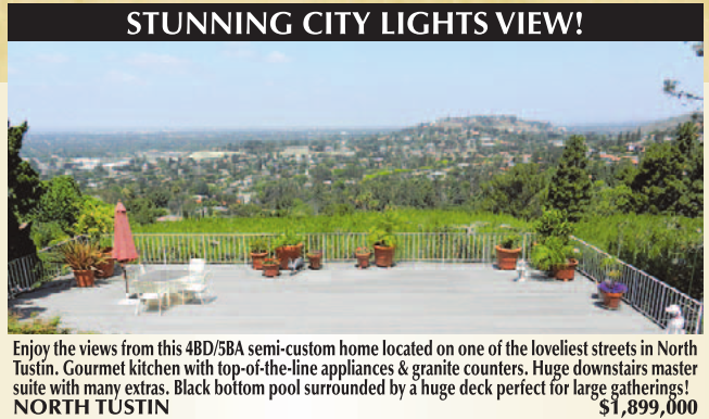 STUNNING CITY LIGHTS VIEW! Enjoy the views from this 4BD/5BA semi-custom home located on one of the loveliest streets in North Tustin. Gourmet kitchen with top-of-the-line appliances & granite counters. Huge downstairs master suite with many extras. Black bottom pool surrounded by a huge deck perfect for large gatherings! NORTH TUSTIN $1,899,000