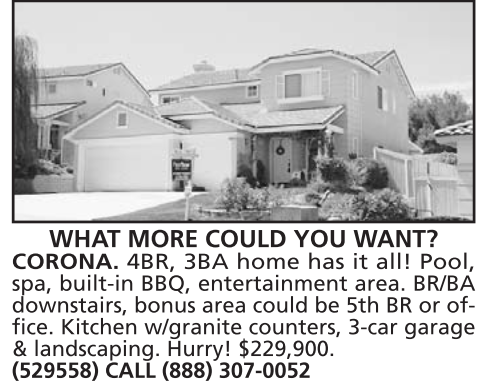 Kitchen w/granite counters, 3-car garage & landscaping. Hurry! $229,900. (529558) CALL (888) 307-0052
