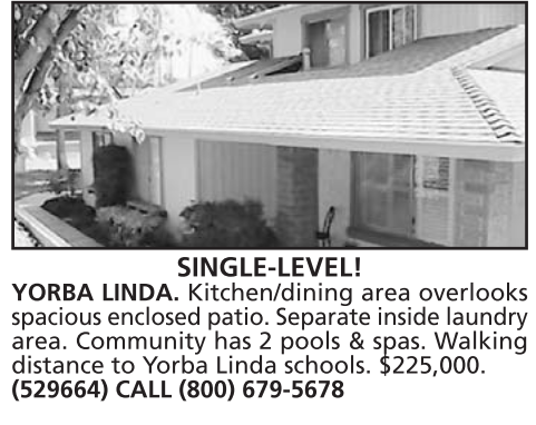 distance to Yorba Linda schools. $225,000. (529664) CALL (800) 679-5678