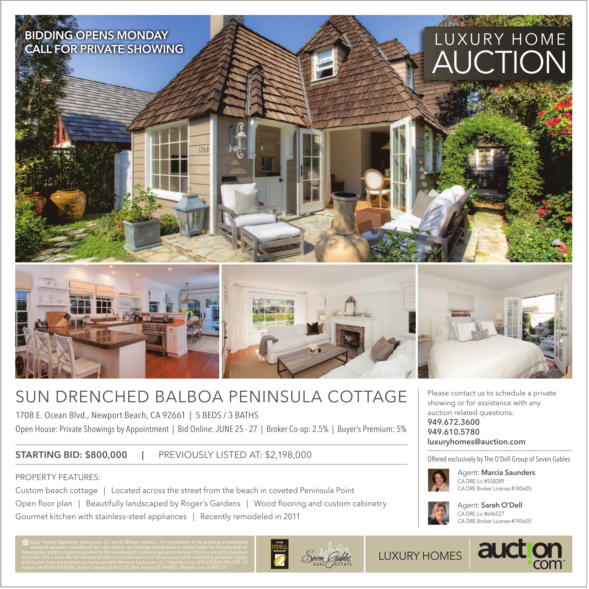 Please contact us to schedule a private showing or for assistance with any auction related questions: 949.672.3600 949.610.5780 luxuryhomes@auction.com