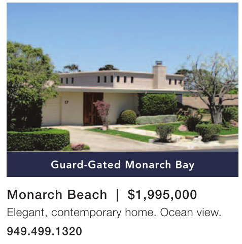 Monarch Beach | $1,995,000 Elegant, contemporary home. Ocean view. 949.499.1320