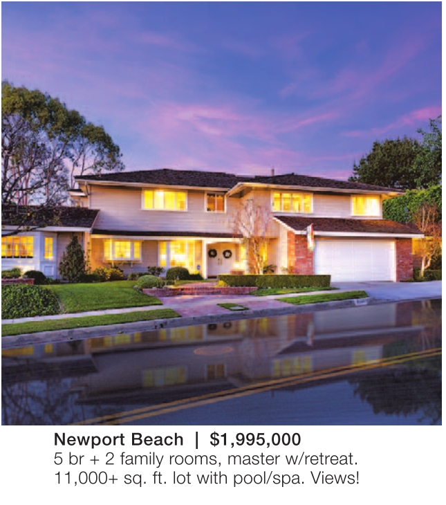 Newport Beach | $1,995,000 5 br + 2 family rooms, master w/retreat. 11,000+ sq. ft. lot with pool/spa. Views!