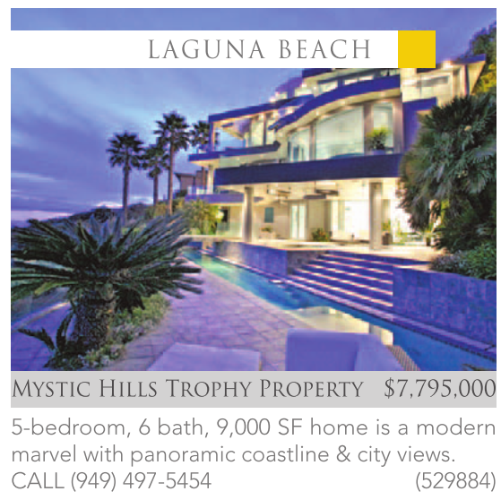 Mystic Hills Trophy Property $7,795,000 5-bedroom, 6 bath, 9,000 SF home is a modern marvel with panoramic coastline & city views. CALL (949) 497-5454 (529884)