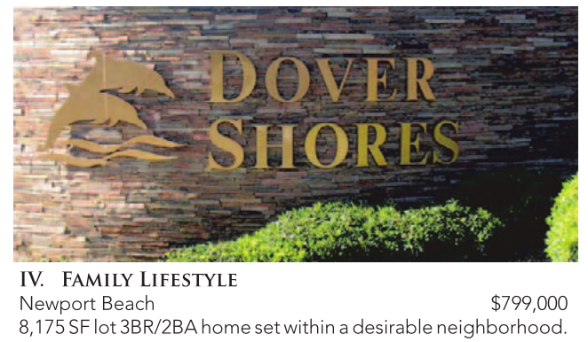 IV. Family Lifestyle Newport Beach $799,000 8,175 SF lot 3BR/2BA home set within a desirable neighborhood.