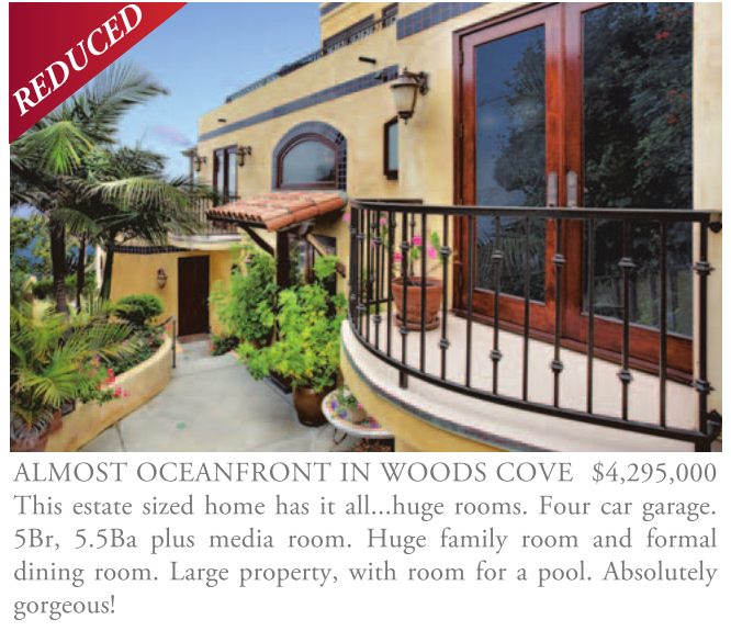 ALMOST OCEANFRONT IN WOODS COVE $4,295,000 This estate sized home has it all...huge rooms. Four car garage. 5Br, 5.5Ba plus media room. Huge family room and formal dining room. Large property, with room for a pool. Absolutely gorgeous!