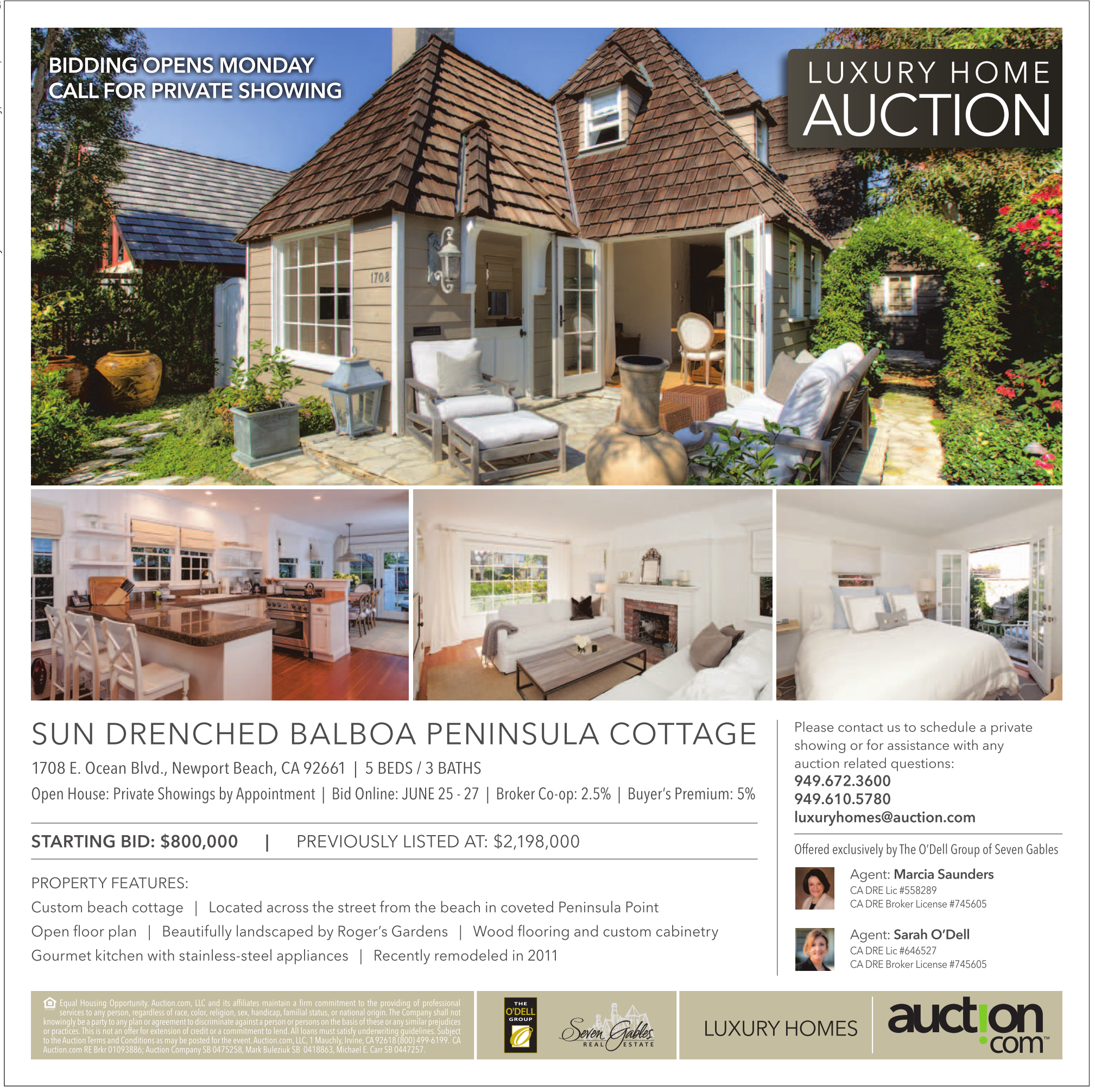 1708 E. Ocean Blvd., Newport Beach, CA 92661 | 5 BEDS / 3 BATHS Open House: Private Showings by Appointment | Bid Online: JUNE 25 - 27 | Broker Co-op: 2.5% | Buyer’s Premium: 5%