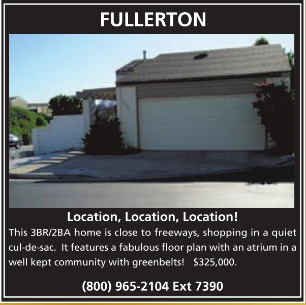 This 3BR/2BA home is close to freeways, shopping in a quiet cul-de-sac. It features a fabulous floor plan with an atrium in a well kept community with greenbelts! $325,000.