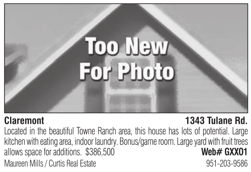 Located in the beautiful Towne Ranch area, this house has lots of potential. Large kitchen with eating area, indoor laundry. Bonus/game room. Large yard with fruit trees allows space for additions. $386,500 Web# GXXO1 Maureen Mills / Curtis Real Estate 951-203-9586