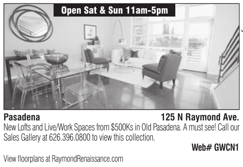 New Lofts and Live/Work Spaces from $500Ks in Old Pasadena. A must see! Call our Sales Gallery at 626.396.0800 to view this collection. Web# GWCN1 View floorplans at RaymondRenaissance.com