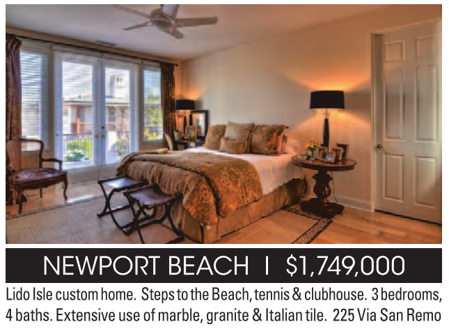 Lido Isle custom home. Steps to the Beach, tennis & clubhouse. 3 bedrooms, 4 baths. Extensive use of marble, granite & Italian tile. 225 Via San Remo