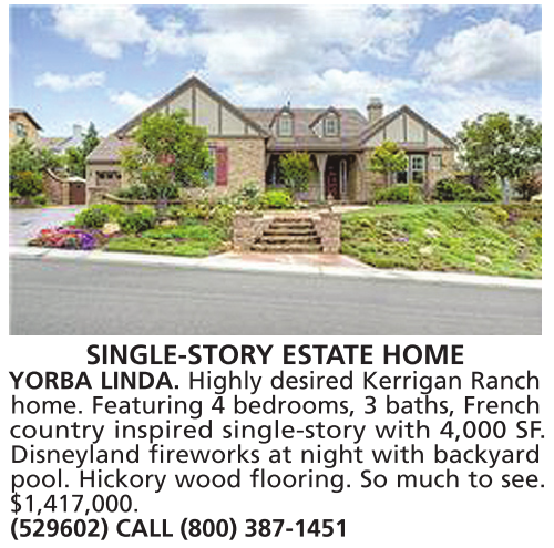 SINGLE-STORY ESTATE HOME YORBA LINDA. Highly desired Kerrigan Ranch