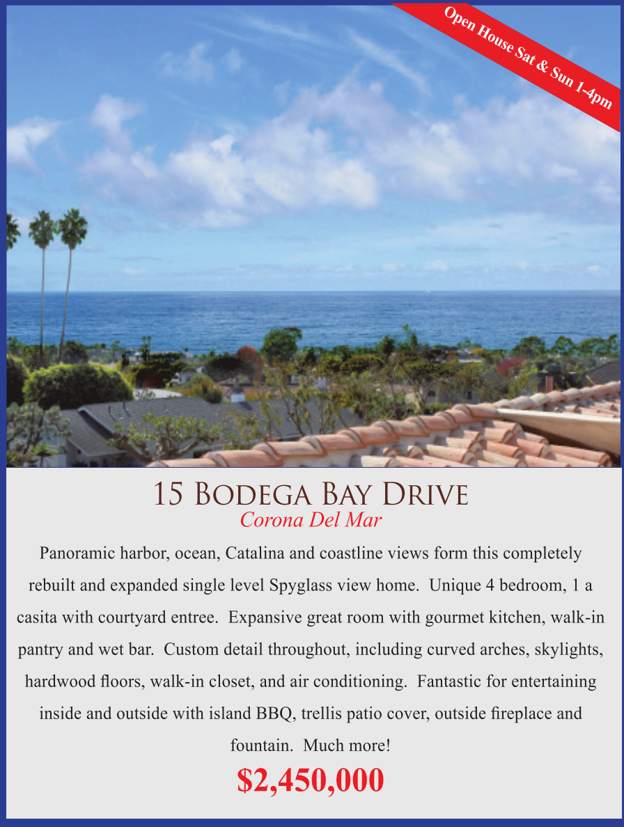 Panoramic harbor, ocean, Catalina and coastline views form this completely rebuilt and expanded single level Spyglass view home. Unique 4 bedroom, 1 a casita with courtyard entree. Expansive great room with gourmet kitchen, walk-in pantry and wet bar. Custom detail throughout, including curved arches, skylights, hardwood floors, walk-in closet, and air conditioning. Fantastic for entertaining inside and outside with island BBQ, trellis patio cover, outside fireplace and fountain. Much more!