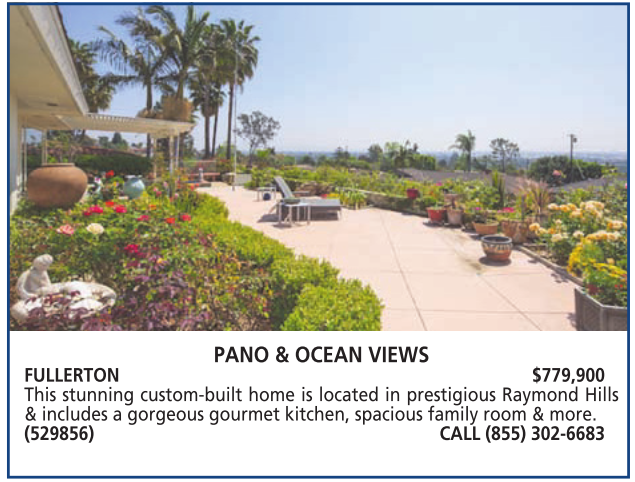 PANO & OCEAN VIEWS FULLERTON $779,900 This stunning custom-built home is located in prestigious Raymond Hills & includes a gorgeous gourmet kitchen, spacious family room & more. (529856) CALL (855) 302-6683
