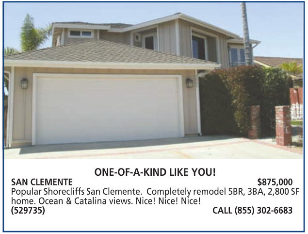 SAN CLEMENTE $875,000 Popular Shorecliffs San Clemente. Completely remodel 5BR, 3BA, 2,800 SF home. Ocean & Catalina views. Nice! Nice! Nice! (529735) CALL (855) 302-6683