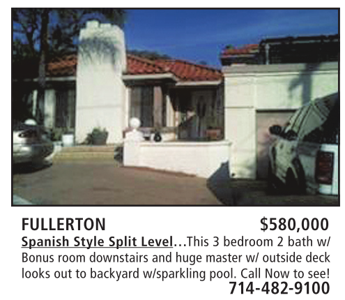 FULLERTON $580,000 Spanish Style Split Level…This 3 bedroom 2 bath w/ Bonus room downstairs and huge master w/ outside deck looks out to backyard w/sparkling pool. Call Now to see!