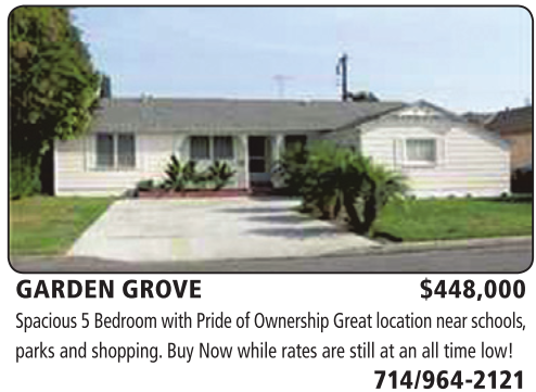 GARDEN GROVE $448,000 Spacious 5 Bedroom with Pride of Ownership Great location near schools, parks and shopping. Buy Now while rates are still at an all time low!