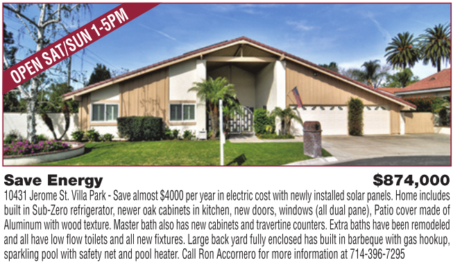 Save Energy $874,000 10431 Jerome St. Villa Park - Save almost $4000 per year in electric cost with newly installed solar panels. Home includes