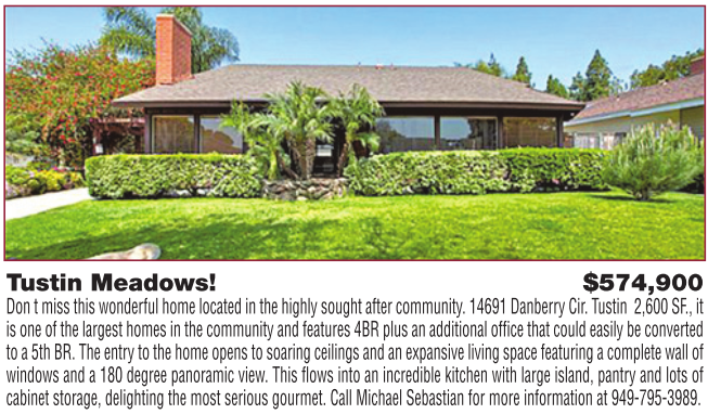 Tustin Meadows! $574,900 Don t miss this wonderful home located in the highly sought after community. 14691 Danberry Cir. Tustin 2,600 SF., it