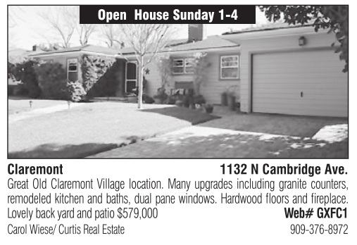 Claremont 1132 N Cambridge Ave. Great Old Claremont Village location. Many upgrades including granite counters, remodeled kitchen and baths, dual pane windows. Hardwood floors and fireplace.