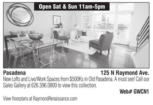 New Lofts and Live/Work Spaces from $500Ks in Old Pasadena. A must see! Call our Sales Gallery at 626.396.0800 to view this collection. Web# GWCN1 View floorplans at RaymondRenaissance.com