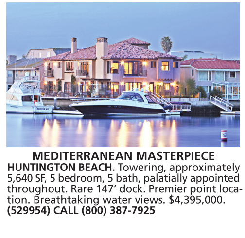bedroom, fireplace. MEDITERRANEAN MASTERPIECE HUNTINGTON BEACH. Towering, approximately 5,640 SF, 5 bedroom, 5 bath, palatially appointed throughout. Rare 147’ dock. Premier point location. Breathtaking water views. $4,395,000. (529954) CALL (800) 387-7925