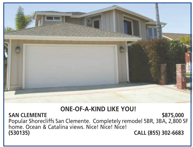 SAN CLEMENTE $875,000 Popular Shorecliffs San Clemente. Completely remodel 5BR, 3BA, 2,800 SF home. Ocean & Catalina views. Nice! Nice! Nice! (530135) CALL (855) 302-6683