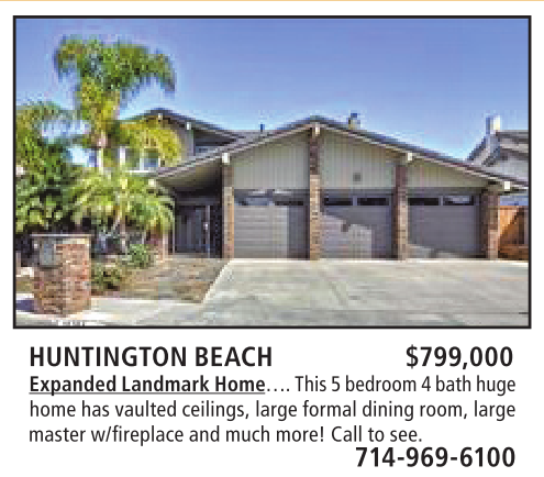 HUNTINGTON BEACH $799,000 Expanded Landmark Home…. This 5 bedroom 4 bath huge home has vaulted ceilings, large formal dining room, large master w/fi replace and much more! Call to see.