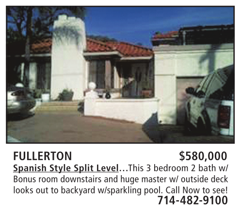 FULLERTON $580,000 Spanish Style Split Level…This 3 bedroom 2 bath w/ Bonus room downstairs and huge master w/ outside deck looks out to backyard w/sparkling pool. Call Now to see!