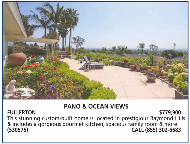 PANO & OCEAN VIEWS FULLERTON $779,900 This stunning custom-built home is located in prestigious Raymond Hills & includes a gorgeous gourmet kitchen, spacious family room & more. (530575) CALL (855) 302-6683