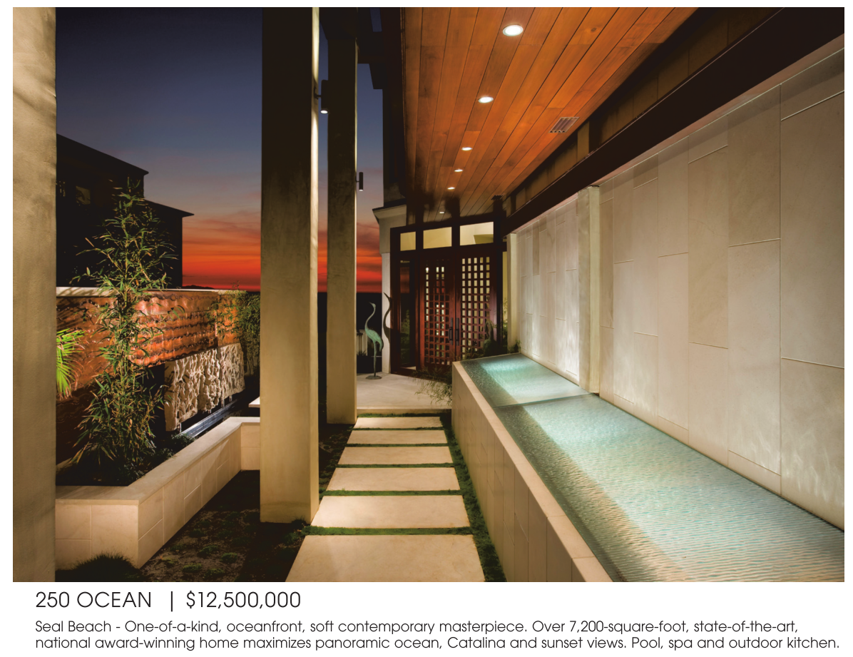 Seal Beach - One-of-a-kind, oceanfront, soft contemporary masterpiece. Over 7,200-square-foot, state-of-the-art, national award-winning home maximizes panoramic ocean, Catalina and sunset views. Pool, spa and outdoor kitchen.