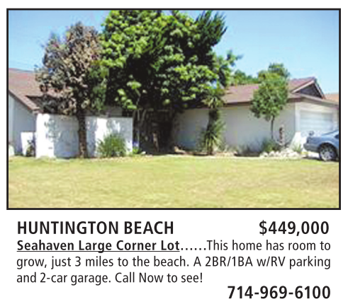 HUNTINGTON BEACH $449,000 Seahaven Large Corner Lot……This home has room to grow, just 3 miles to the beach. A 2BR/1BA w/RV parking and 2-car garage. Call Now to see!